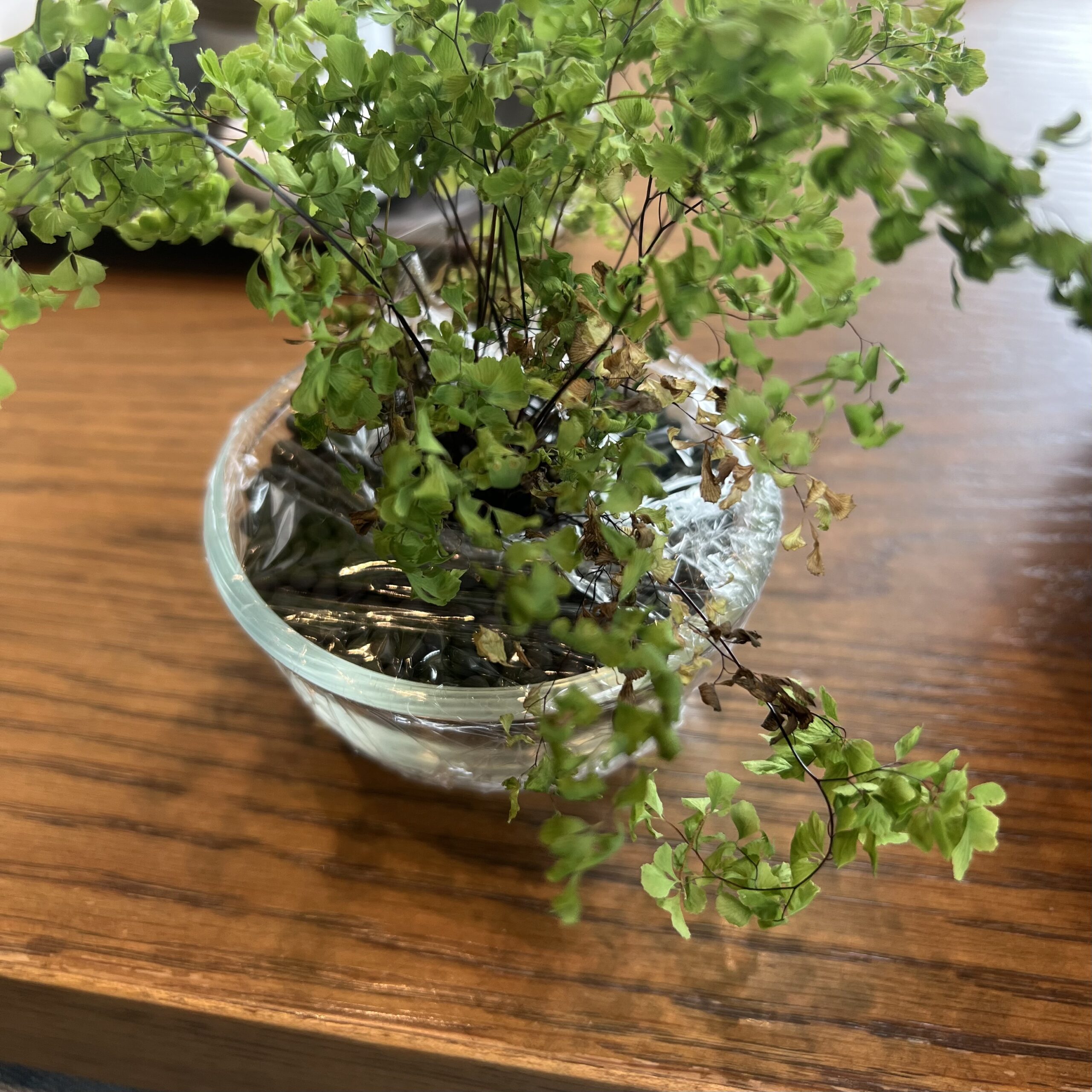 昨日は知人宅で観葉植物をハイドロカルチャー化するお手伝いをしてきました。私も余った土を頂戴しまして、開店祝いでいただいたアジアンタムをハイドロ化。机に小さな森ができたようでかわいいです。