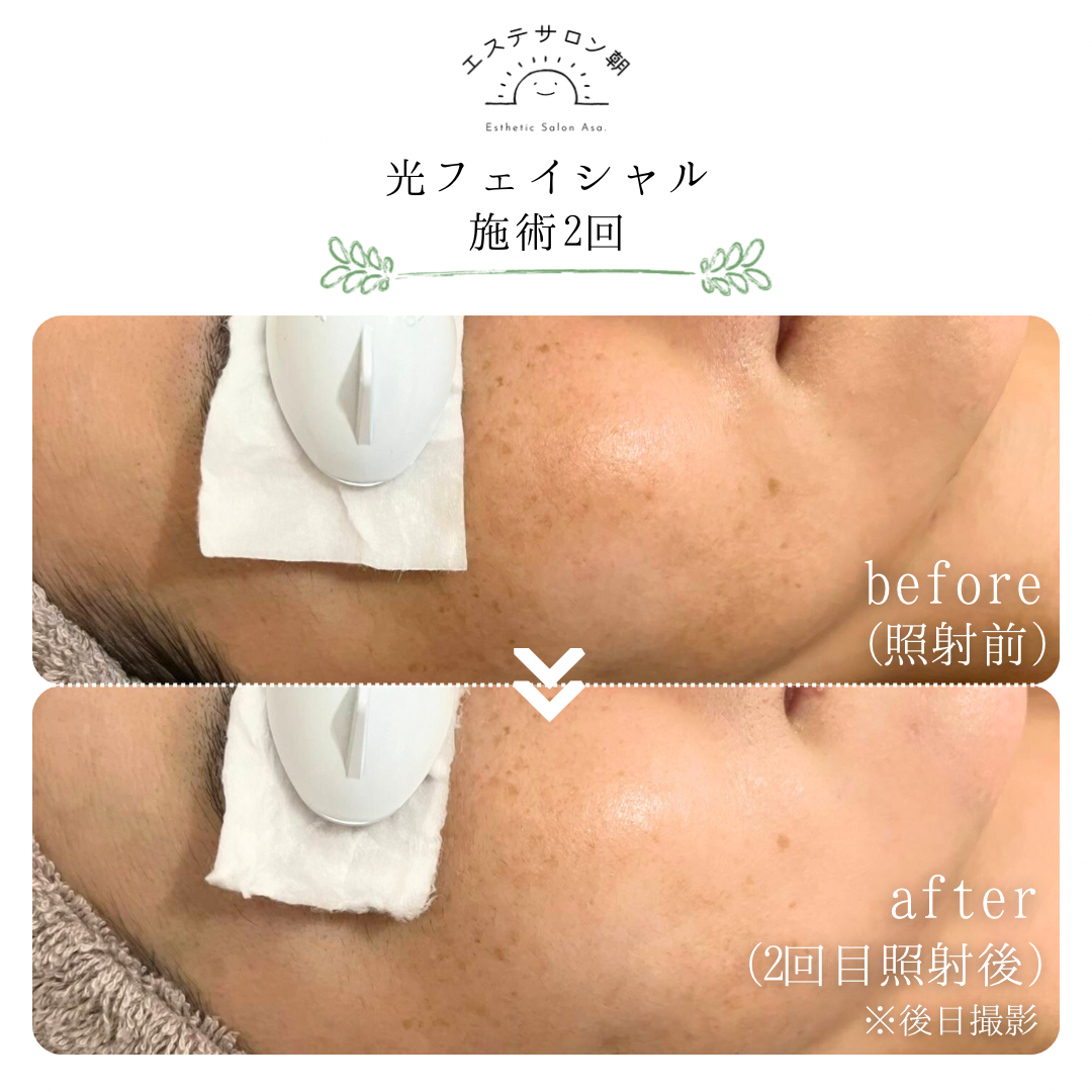 当サロンの光コースはメイク落とし、洗顔、マッサージ、パック全て込みとなっておりますので、お肌のストレスもお体の疲れも同時に癒していただくことが可能です◎