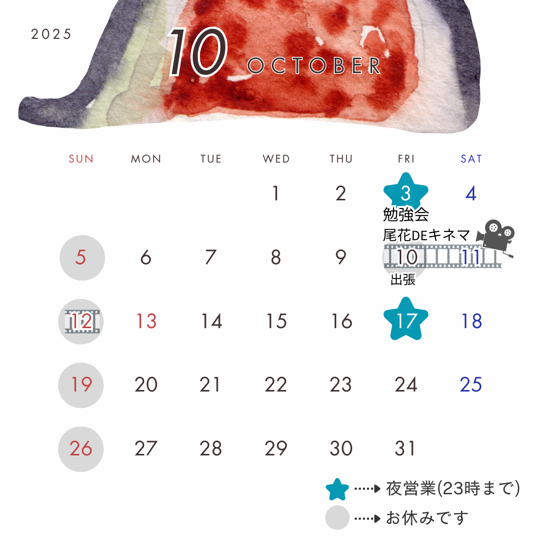 10月の営業カレンダー